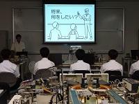 午前の部・午後の部をそれぞれ2部制として、さらに9つの班に分かれて、7つの工業科と学校概要の説明、紹介動画をご覧いただきました。