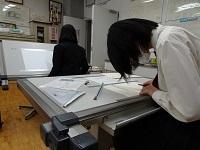 建築デザイン科の生徒たちが製図に取り組んでいました。