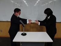 終業式に先立ち、生徒会役員の認証式、皆勤賞表彰等を行いました。