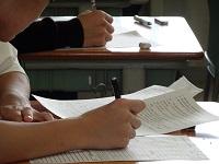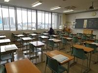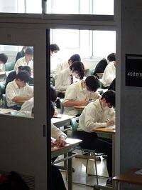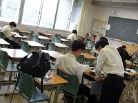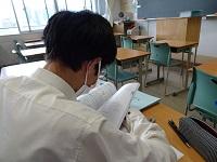 早めに登校して試験対策の仕上げに取り組む生徒たち。