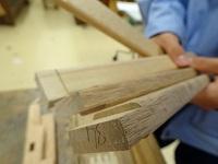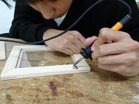 フレームに焼きごてで装飾をつけています。