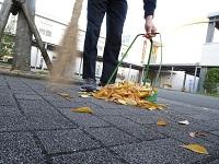 早朝、落ち葉を掃き掃除してくれている生徒たちがいました。