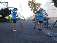 早朝、校内の落ち葉を掃き集めてくれていました。