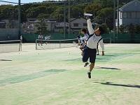新人戦県大会ベスト8は、過去最高の成績です。リーグ戦では、デュースになるゲームや、5ゲーム目までもつれ込む接戦になった試合が多く、体力も精神力も大きく消耗するハードな試合展開でした。どの選手も強豪校の選手を相手に最後までよく健闘しました。