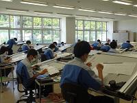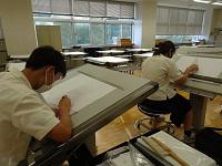 製図実習室 真剣に取り組む姿がみられました。