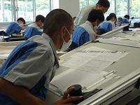 製図に取り組む生徒たち。