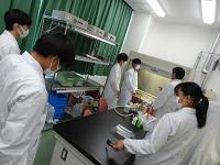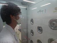 バイオ実験室で実験を行います。