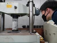 コンクリートの強度を実験していました。