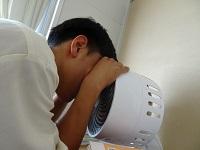 サーキュレーターの風を受けて汗がおさまるのを待ちます。
