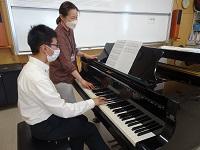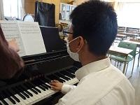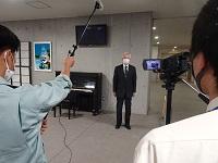 10月20日(木)放課後、再編統合の際、旧清水工業高校から本校に引き継がれたアップライトピアノが復活し、生徒昇降場に設置されました。今年度の蒼穹祭にあわせて、ピアノのセレモニーを行います。今日はその映像を前撮りするため、同窓会の竹中会長においでいただき、ご挨拶と校歌演奏を録画しました。