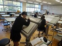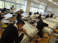建築デザイン科の生徒たち 製図に取り組んでいます。