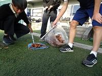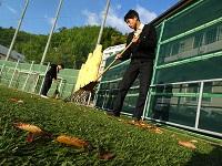 グラウンドの落ち葉を掃き掃除してくれていました。