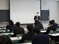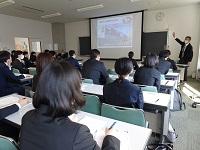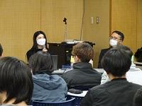 11月16日(木)、電子物質工学科3年生の帰りのLHRで、来校した卒業生が、後輩たちにアドバイスなどを話してくれました。