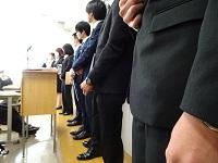 「4年前に物質工学科を卒業し、推薦入試で静岡大学に進みました。大学では研究活動に励み、このたび東京工業大学の大学院の試験に合格し、今日は、当時の担任だった鈴木先生に、その報告に訪れました。大学院では、生物で分解されるプラスチックの研究をしたいと考えています。大学院の入試は、大学入試とは異なるので、しっかり勉強して(特に英語は大切)、みなさんも大学院に進み研究を深めて欲しいと思います。」