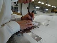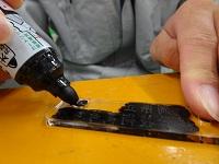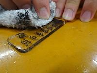 レーザー加工機で作成したプレートの仕上げをしてくれていました。
