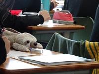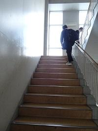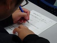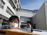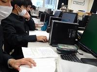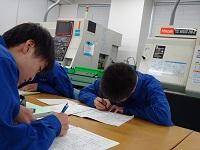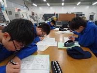 生徒昇降場でレポートを作成している生徒たちの姿がみられました。