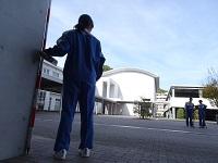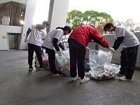 早朝、黙々と落ち葉を掃き掃除してくれている生徒たちがいました。