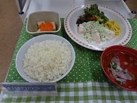 日替わりランチは「蒸しササミのピリ辛ポン酢丼」です。