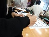 学校の概要等、高等学校の現状と新教育課程、教育相談室の役割等の説明を受けた後、授業見学をしました。