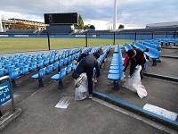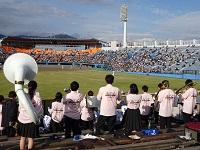 吹奏楽部が女子チームのスタンドでの応援のほか、さまざまな補助、試合終了後のごみ拾いなど、科学技術高校の生徒たちがボランティア活動を行い、地元で開催されるイベントの盛り上げを手伝わせていただきます。