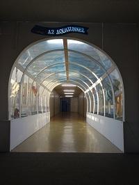 12月1日(金)放課後、教室棟と実習棟の間の渡り廊下に、文化祭で装飾を施された「A2アクアトンネル」が太陽の光を受けて輝いて見えました。