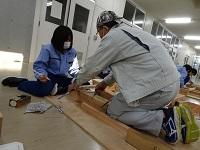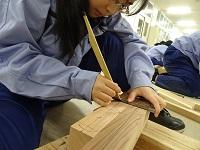 12月2日(土)、建築デザイン科の生徒たちが、技能検定「建築大工(大工工事作業)」の実技試験に向けて、講師の先生方から指導を受けていました。