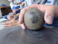 園児が帰った後、希望する園児から預かった泥だんごを、生徒たちが磨き上げてくれていました。