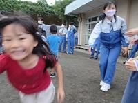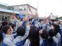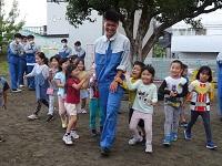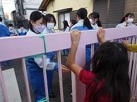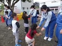 園児たちが本校へ来た道を、今度は生徒たちがこども園に向かいました。