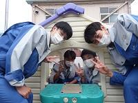 10月18日(火)、長沼こども園の年長組の園児たちが来校し、本校都市基盤工学科3年の生徒たちのサポートを受けながら、泥だんごづくりに挑戦しました。