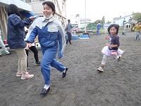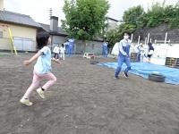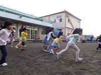 本気の鬼ごっこ 園庭を走り回って楽しみました。
