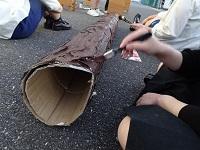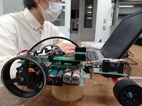 本校ロボット工学科2年の日比さんは、「持続可能放任竹林自動管理ロボット」というテーマで、放置竹林が生態系に悪影響を与え、土砂災害の要因にもなりうることを指摘、竹林を伐採する竹林自動管理ロボットを提案しました。