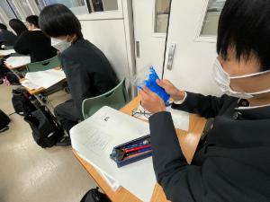 また電子物質工学科はHR教室にて、静岡県立大学・永井先生による、「身の回りにあるプラスチック」という講義を聴講しました。講義の最後には、スライム作りなどを体験しました。