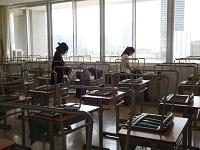 早めに登校して、授業の準備や、明日から始まる定期テスト対策などをする生徒たち。
