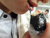 休み時間、家族の愛情のこもったおにぎりを頬張っている姿がみられました。
