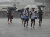 8月16日(水)、台風の影響で猛烈な雨が降る朝をむかえました。今朝の科学技術高校の様子を一部紹介します。