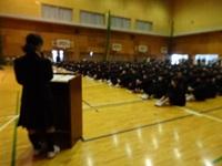 「今年度最後の終業式となりました。1学期始業式で、皆さんにお話ししたことを覚えていますか。テーマは「やる気をどう出すか?」ということでした。