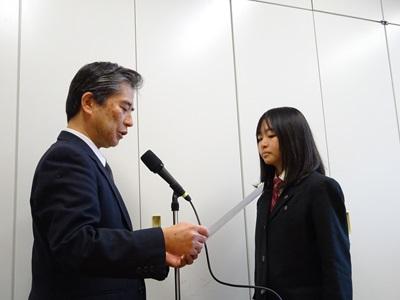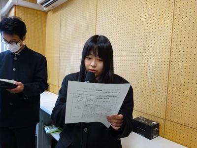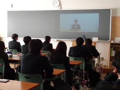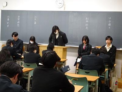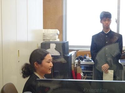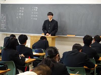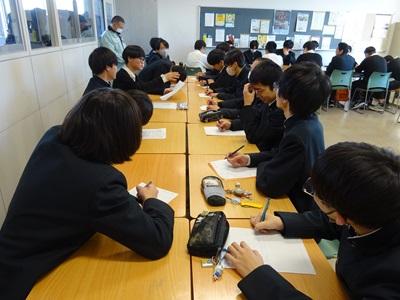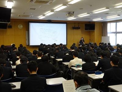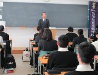写真)校長先生の激励に、真剣に耳を傾ける理数科生徒