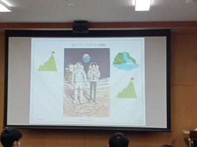 写真 ロケット推進理論を解説する松井教授