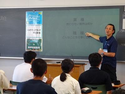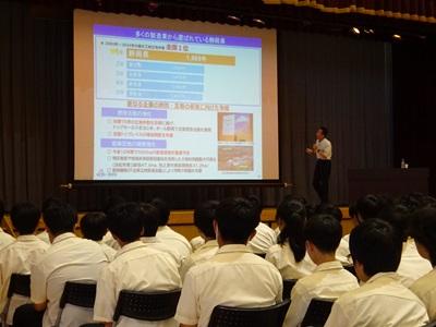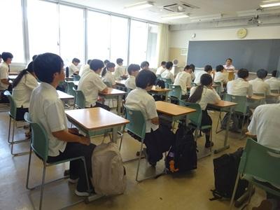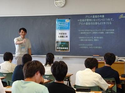 本校理数科では、1年で化学、生物を学び、物理は2年から学びます。講師の光野先生が微細な結晶の写真や図を多く見せていただき、テンポよくお話しいただいたので、生徒たちの理解が深まりました。ありがとうございました。