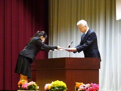 同窓会長賞 授与代表生徒:建築デザイン科 森谷さん