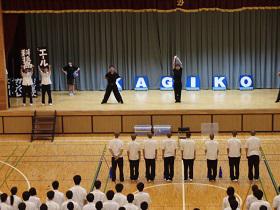 初日は、応援指導部の指揮のもと、礼の仕方から始まり、校歌斉唱、エール、第一応援歌・第二応援歌からの「カツゾ」を練習しました。4日間に分けて、応援のすべてのパターンを練習し完成していくことになります。
