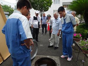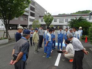 7月16日(火)放課後、地元自治会の方々が来校され、本校生徒とともに災害時用仮設トイレの組み立て練習を行いました。