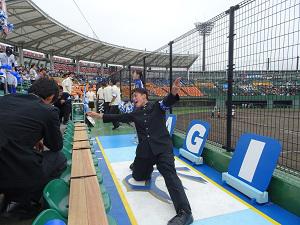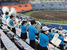 最後に応援指導部の指揮下、吹奏楽部の演奏により全員で校歌を斉唱し、選手たちにエールをおくりました。