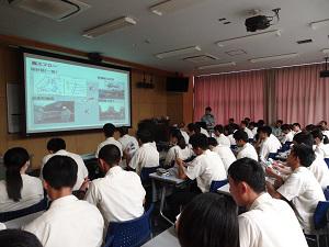 7月18日(木)、都市基盤工学科3年生40名と理工科1年生41名を対象として、(一社)静岡県土木施工管理技士会静岡支部の方々に講師を務めていただき「土木施工の技術講演会」を行いました。