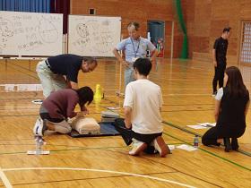 10月10日(木)第3回定期試験の2日目の午後、本校教職員を対象に救急法の研修会が行われました。