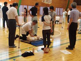 本研修会は、突然の心停止から命を救うAEDを使用した救急法、食物及び薬物等による全身的なアレルギー反応が起きた際のエピペンの使用方法について、知識と技術を習得することを目的に開催されました。