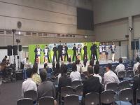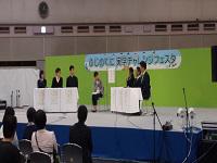 また、ステージでは、応援指導部の発表も元気よく賑やかに行われました。高校生と企業人とのパネルディスカッションには、機械工学科2年生1名が高校生のパネリストとして参加しました。式典の最後には、実行委員長である本校学校長が講評を行い、中部地区で行われた盛大なフェスタが幕を閉じました。