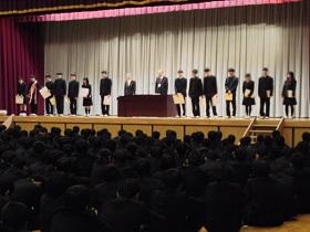 23日の本校2学期終業式で優秀賞の校内表彰を行いました。