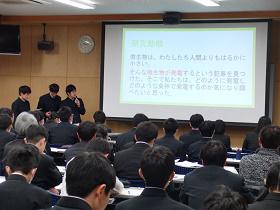 日々の研究成果を指導者や仲間そして後輩たちに発表するもので、工業科は3年間、理数科は2年間の学習の