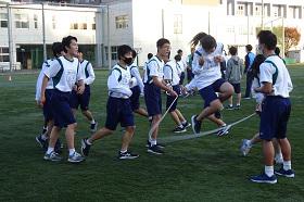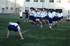 1年部ではLHRの時間を利用し、本校グラウンドにおいて学年体育大会を実施します。競技種目は、①ロープジャンプEX(エクストラ)、②8字タイムアタック、③クラス対抗リレーの3種目、クラス対抗戦にて行われます。